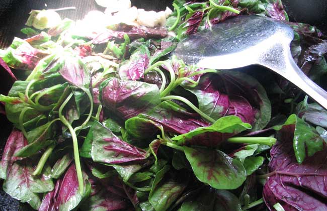 【材料】红苋菜500克,蒜子1头,葱2根,姜1块,盐1茶匙。