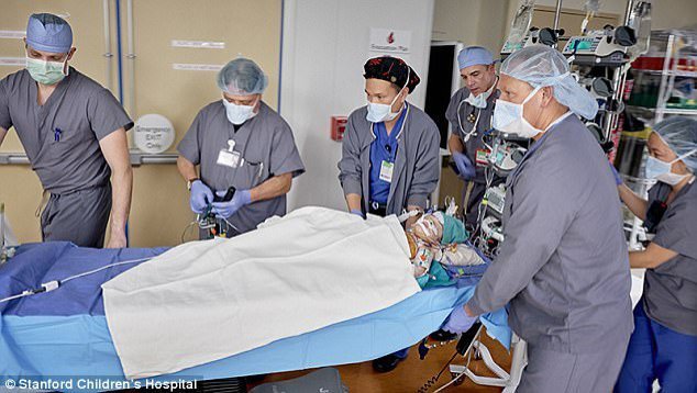 姐妹俩于去年 12 月 6 日在美国加利福尼亚接受手术来分离两人的消化系统、子宫、肝脏、骨盆和第三条腿。之前,妹妹艾瑞卡的体型只有姐姐伊娃的一半大,伊娃把两人的大多数营养吸收掉了。现在,伊娃和艾瑞卡几乎体重一样了,都是 18 斤左右。