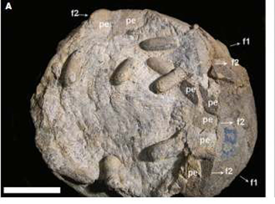 1989年,阿根廷巴塔哥尼亚地区发现了大量蜥脚类恐龙蛋化石和胚胎化石,主要来自体型巨大的无法龙(titanosaur),年代约为7000万年前。最近,研究者们发现一枚破碎的蛋中有腊肠状结构,尺寸约为2-3cm长,1cm宽,这种结构与昆虫茧化石极为相似,特别像是某种黄蜂的茧。