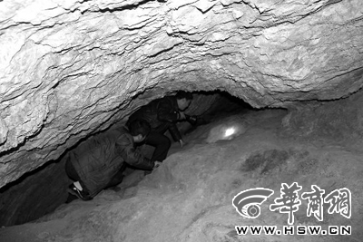 有关人员探查红军镇庙湾村青铜沟的古矿洞