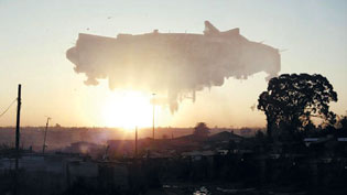 ▲科幻电影《第九区》中的外星人飞船。UFO和外星人是电影界不可或缺的题材来源。
