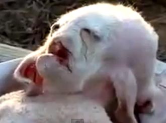 据悉,有人初步判断这有可能是山羊的畸胎,甚至就有网友表示是“化学战”的结果。