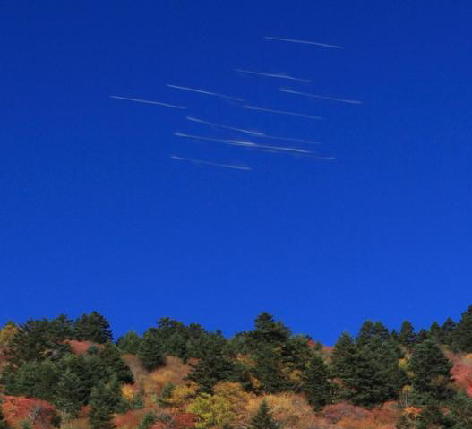 10月1日,有摄影爱好者在神农架拍摄秋色时,发现一组不明飞行物,图片拍摄于当日上午9时34分4秒,画面显示,山脊上方的天空中出现了10多条直细线状的物体。经询当地气象部门有关人士,当地气象专家也没能给出确切解释。与此同时,美国上空近日也出现不明飞行物,那么这些不明飞行物究竟是何物?